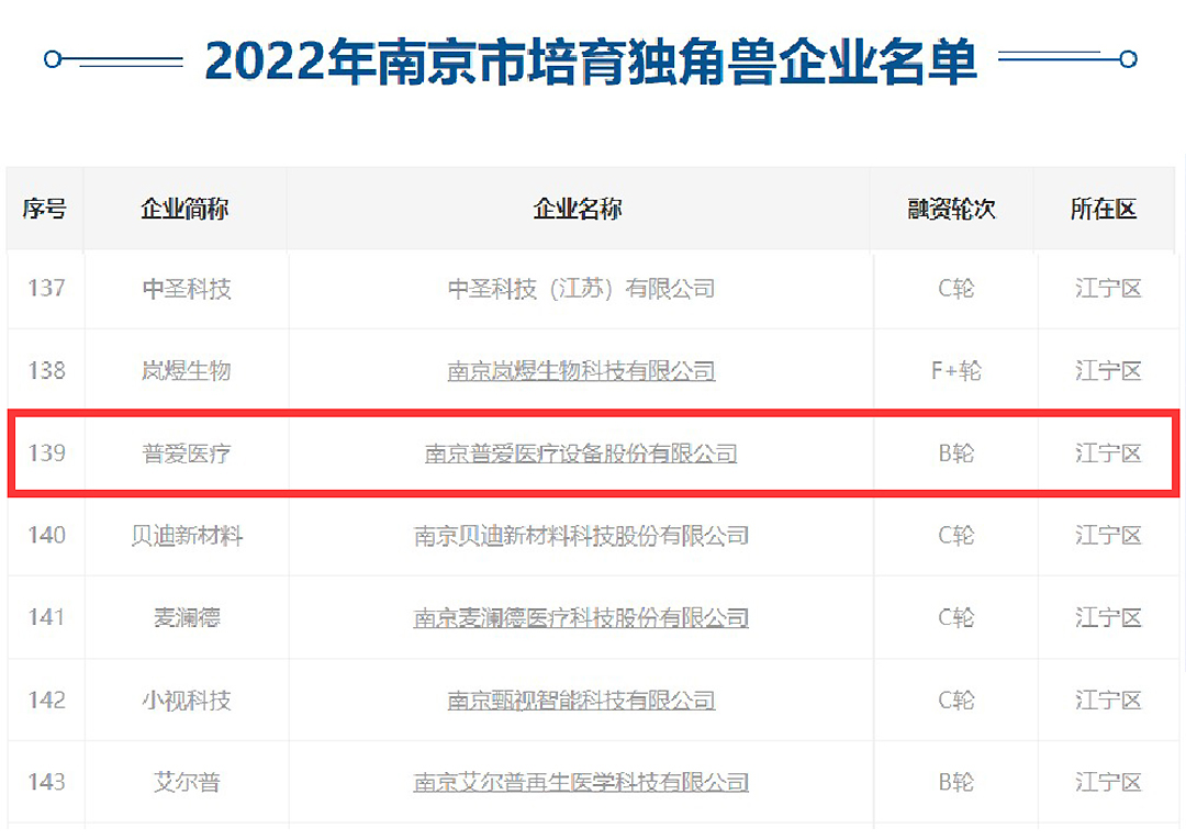 繼2021年獲此殊榮,普愛醫(yī)療再次被評為“南京市培育獨(dú)角獸企業(yè)”,彰顯了普愛醫(yī)療日益壯大的企業(yè)實力和業(yè)界對公司科研及發(fā)展成果的充分肯定。