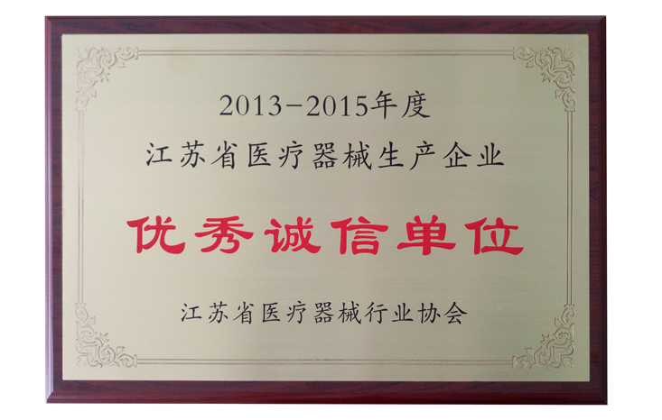 普愛醫療榮獲2013-2015年度江蘇省醫療器械生產企業“優秀誠信單位”的稱號!